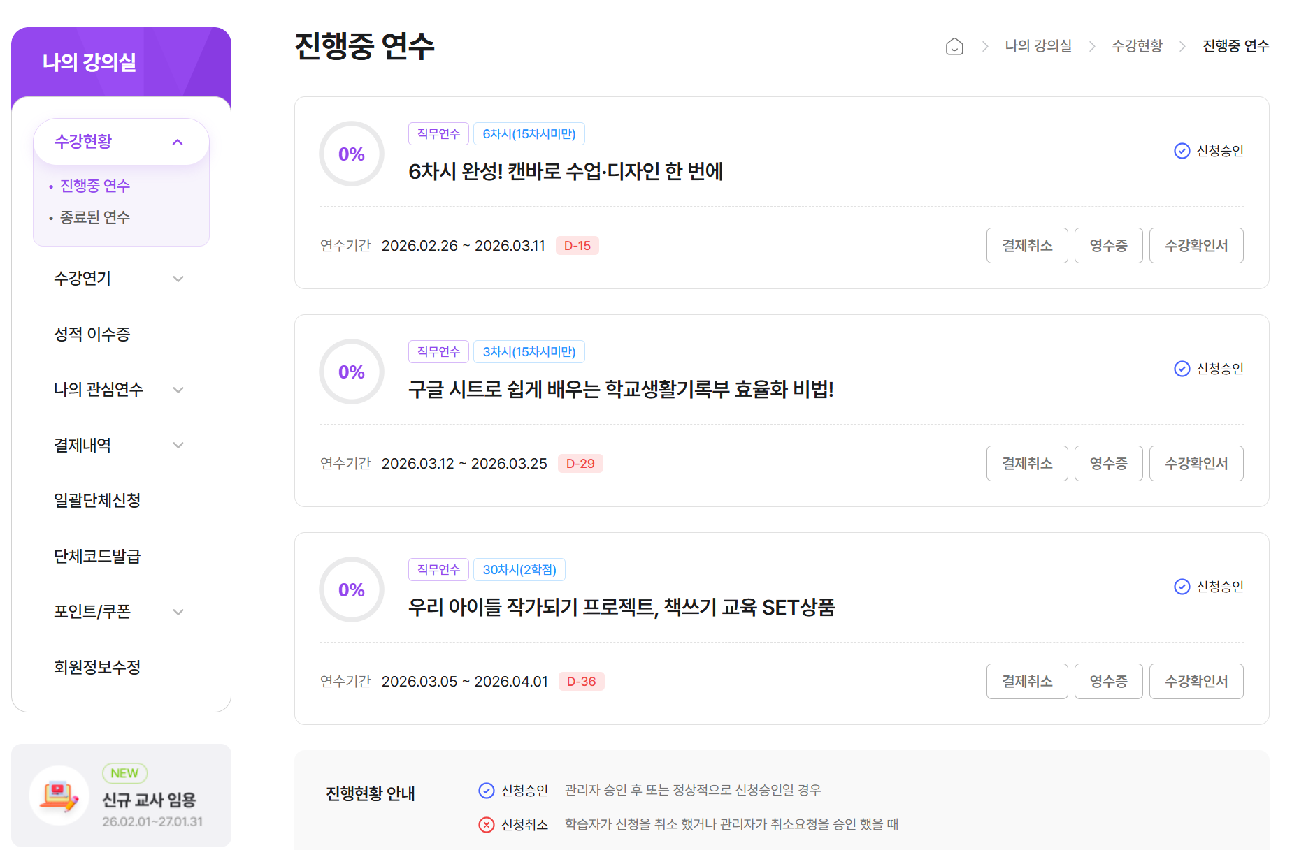 내 연수 현황을 한눈에 볼 수 있는 연수 홈 구축